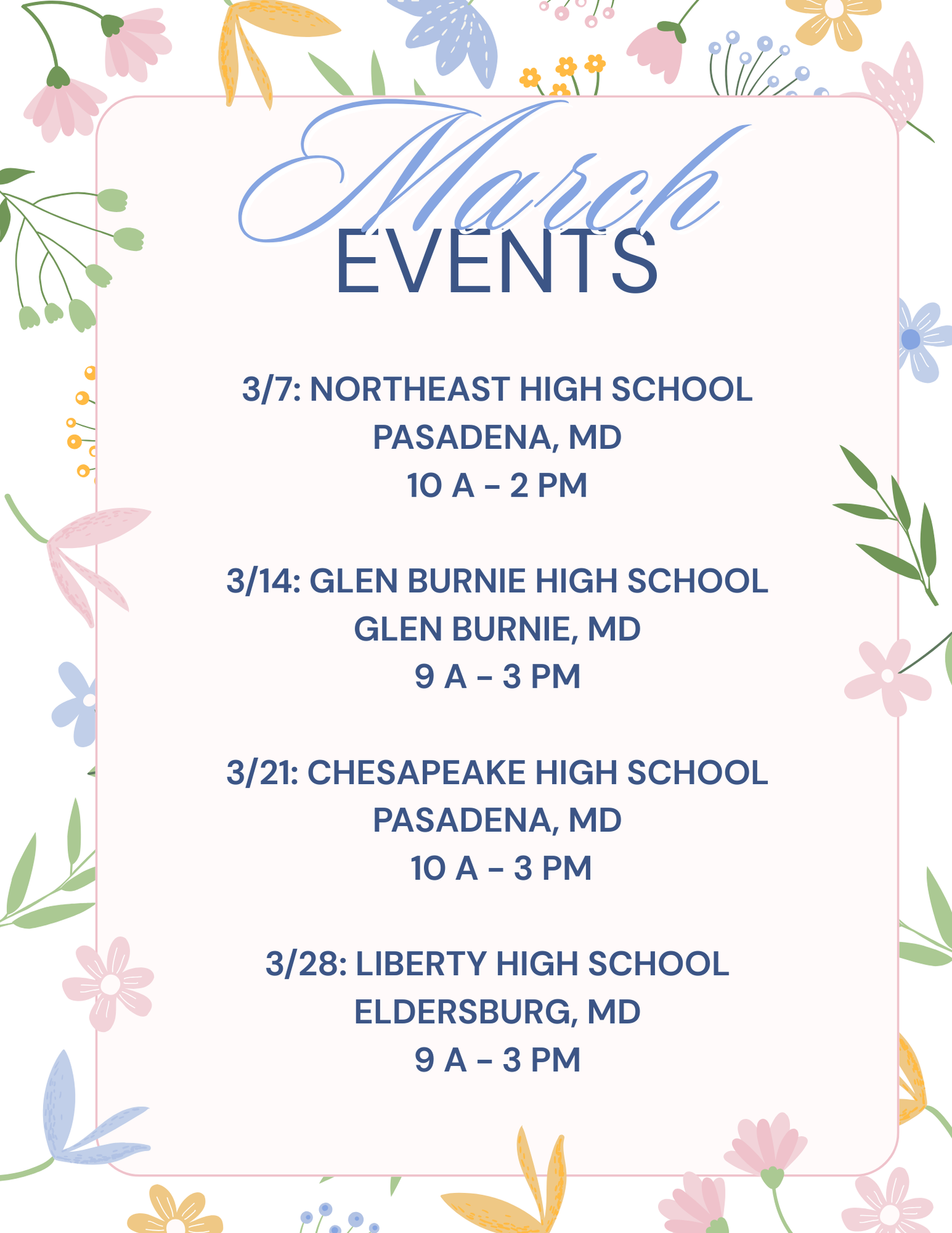 3/7/26: Northeast High School Spring Craft Fair - Pasadena, MD - 10 a - 2 pm
