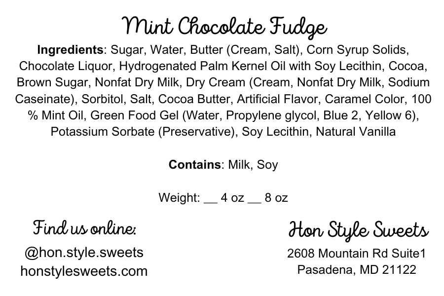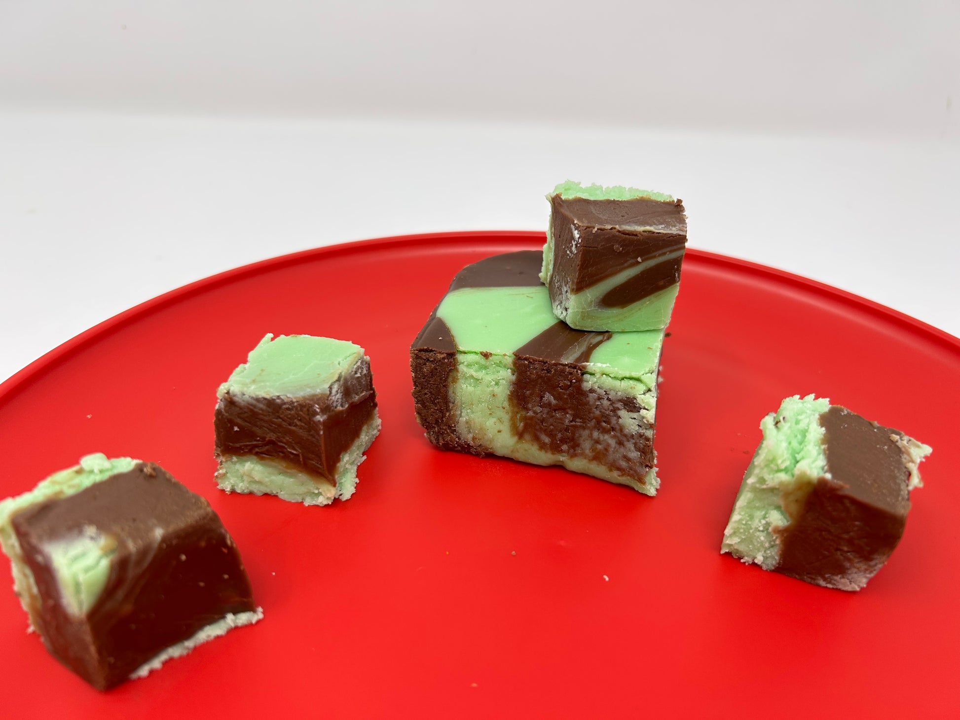 Our Chocolate Mint Fudge features our classic chocolate fudge swirled with a rich mint fudge.