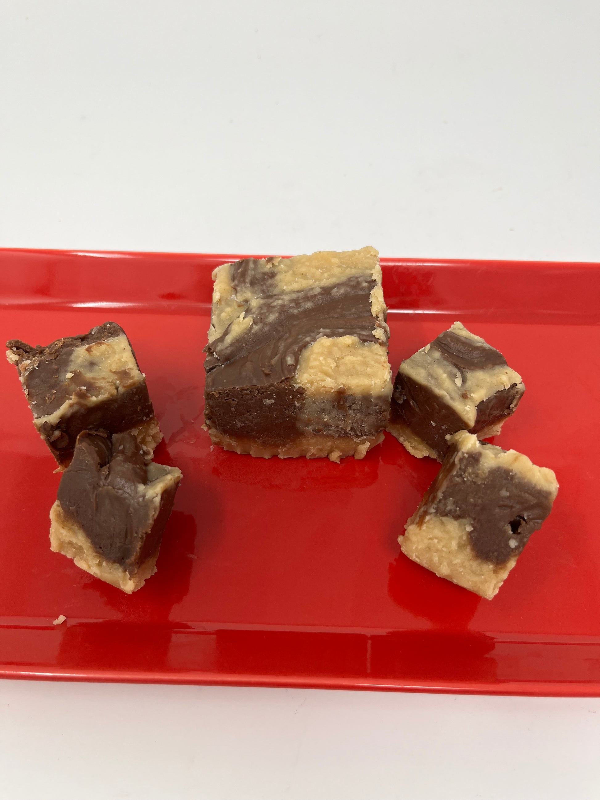 Our Chocolate Peanut Butter Fudge is a long time fan favorite, and for good reason. Rich, creamy and truly the best of both worlds. Each container has approximately 1/2 pound of fudge and a knife to make for easy serving or fudge defending.