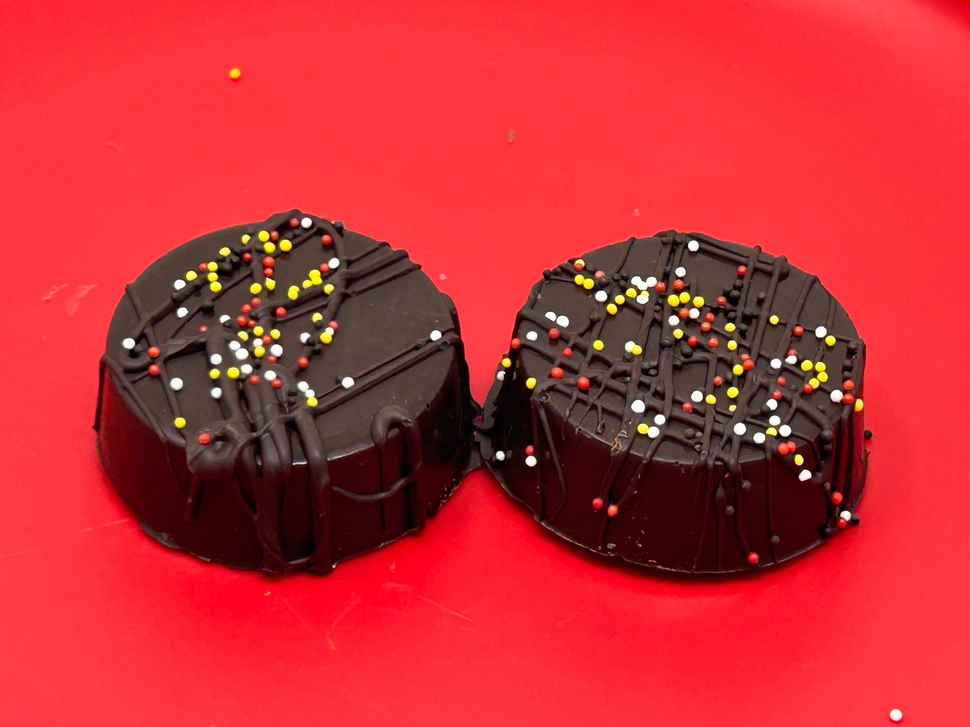 A long time favorite, we plunge chocolate sandwich cookies in more chocolate and then drizzle with chocolate and sprinkles.